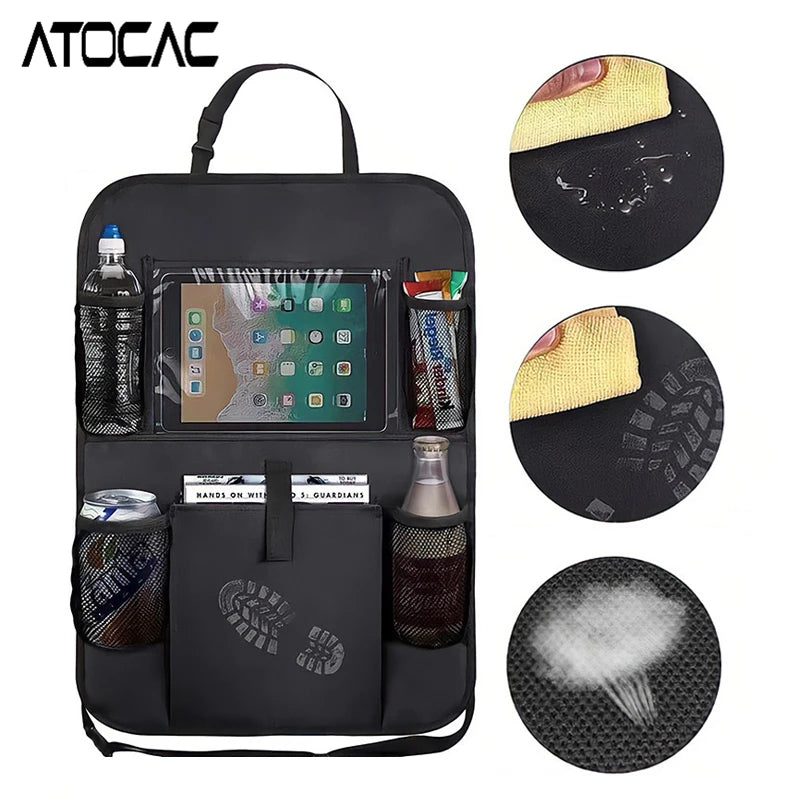 Cansado de bancos bagunçados e pegadas enlameadas? Este organizador de assento de carro resistente combina armazenamento inteligente com proteção confiável para o encosto. Feito de tecido Oxford fácil de limpar, ele protege os bancos de couro/tecido de crianças, animais de estimação e derramamentos, enquanto mantém todos os seus itens essenciais ao alcance.